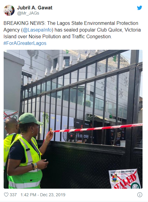 According to the Special Adviser to the governor on New Media, Jubril Gawat, who made this known in a tweet on Monday, said the club was shut over Noise Pollution and Traffic Congestion.