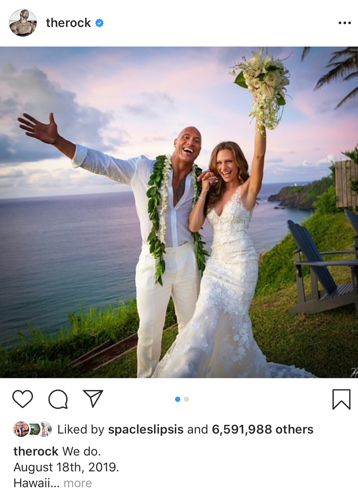 The rock announced made an instagram post confirming his wedding which held at Hawaii yesterday. See the post below: